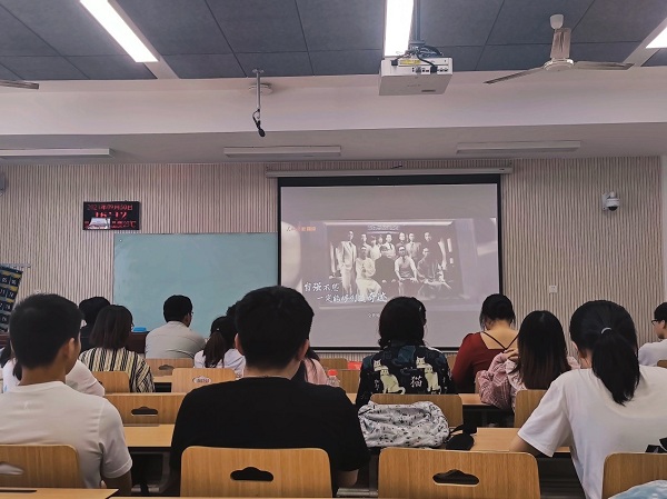 学生党员和团员共同观看影片《建党百年的历程》,见证了我国从站起来到富起来到强起来的伟大飞跃。由工商党支部副书记王钰凡同志带领齐唱《歌颂祖国》,在“五星红旗迎风飘扬,胜利歌声多么嘹亮;歌唱我们亲爱的祖国,从今走向繁荣富强……”的激昂歌声中传达吾辈青年对祖国的热爱。
