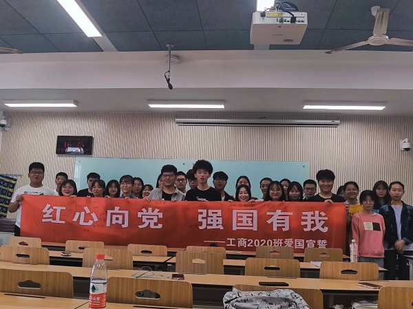 为热烈庆祝新中国成立72周年,深入学习贯彻习近平总书记“七一”重要讲话精神,激发学生党员和共青团员的爱国热忱,9月30日工商党支部联合工商2020团支部在N8619共同开展“红心向党 强国有我”主题教育活动。活动由工商党支部副书记王钰凡、工商2020团支部书记王梓名共同主持开展,工商党支部委员和工商2020团支部全体同学参加本次活动。